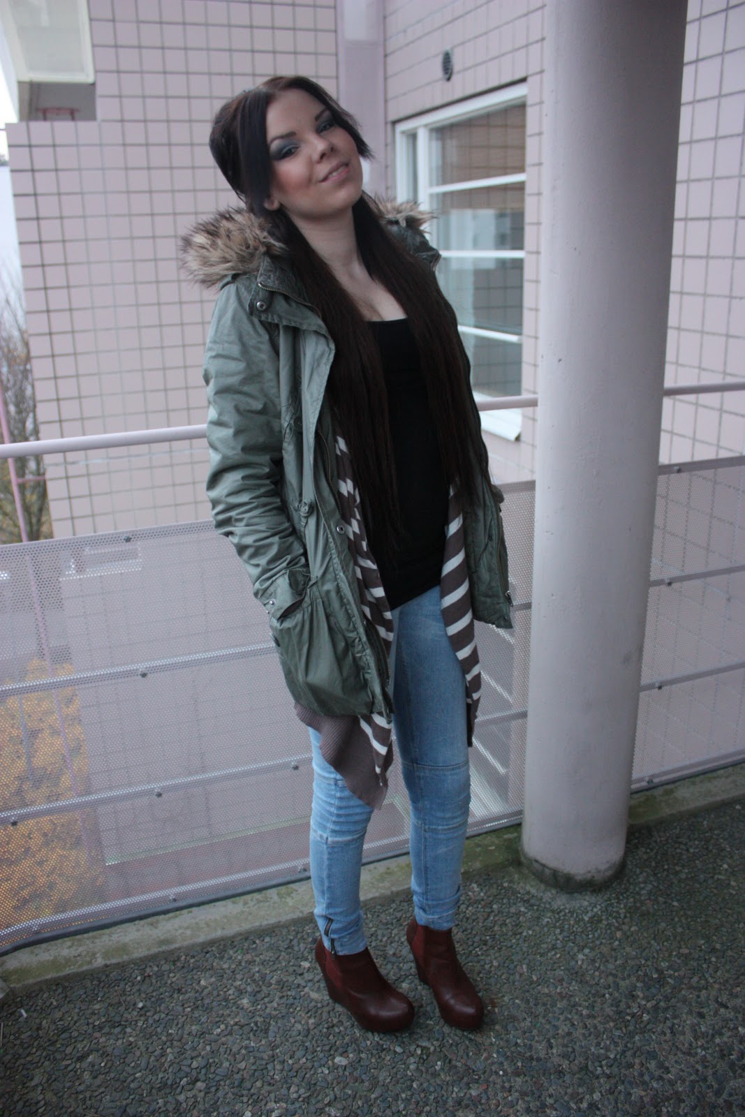 Tänään tehtiin Oton ja pikkusen kanssa kävelylenkki Kelalle ja kauppaan kun piti käydä viemässä isyyspäivärahapaperit. Luulin kanssa et mun pitää hakee lapsilisää erikseen mut se Kelan asiakaspalvelija kertokin et neidille on myönnetty jo lapsilisä tän kuun alusta alkaen. Oli positiivinen yllätys et kerranki joku byrokratiashaisse hoituu itsestään ilman kauheeta vääntöö! 😀 Tässä tän päivän asua (onneksi kerettiin ulos ennen tota kauheeta myrskyä, oisin muuten jäätyny :D):