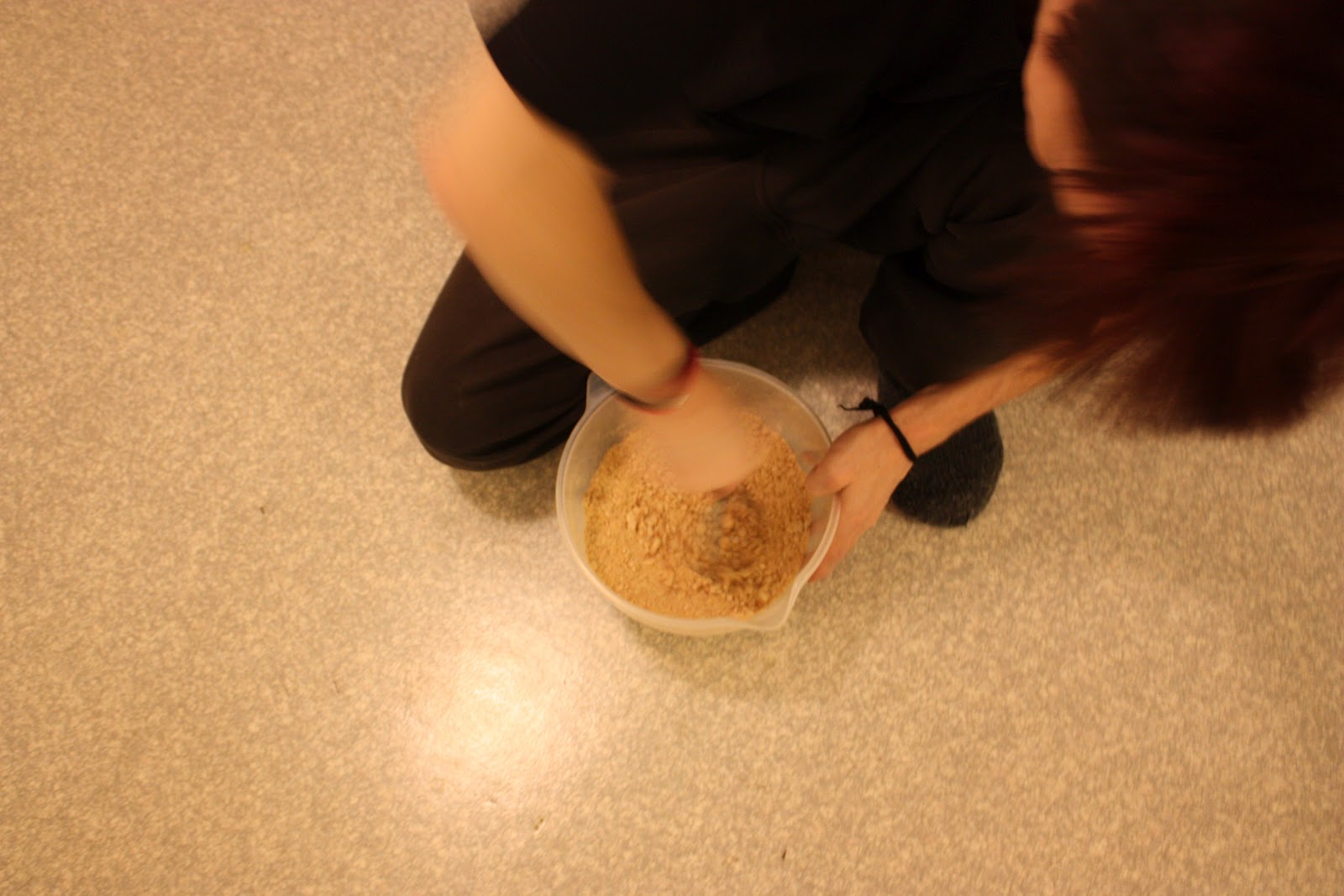 Otto murskaa keksejä kakkupohjaan, ihana muru<3