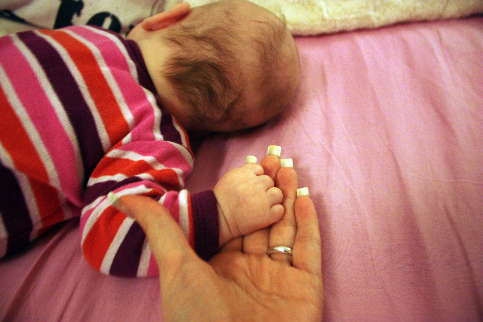 | ”Mulla on myös ihanat pienet minikädet ja on turvallista pitää äitin sormesta kiinni ku nukkuu♥” |