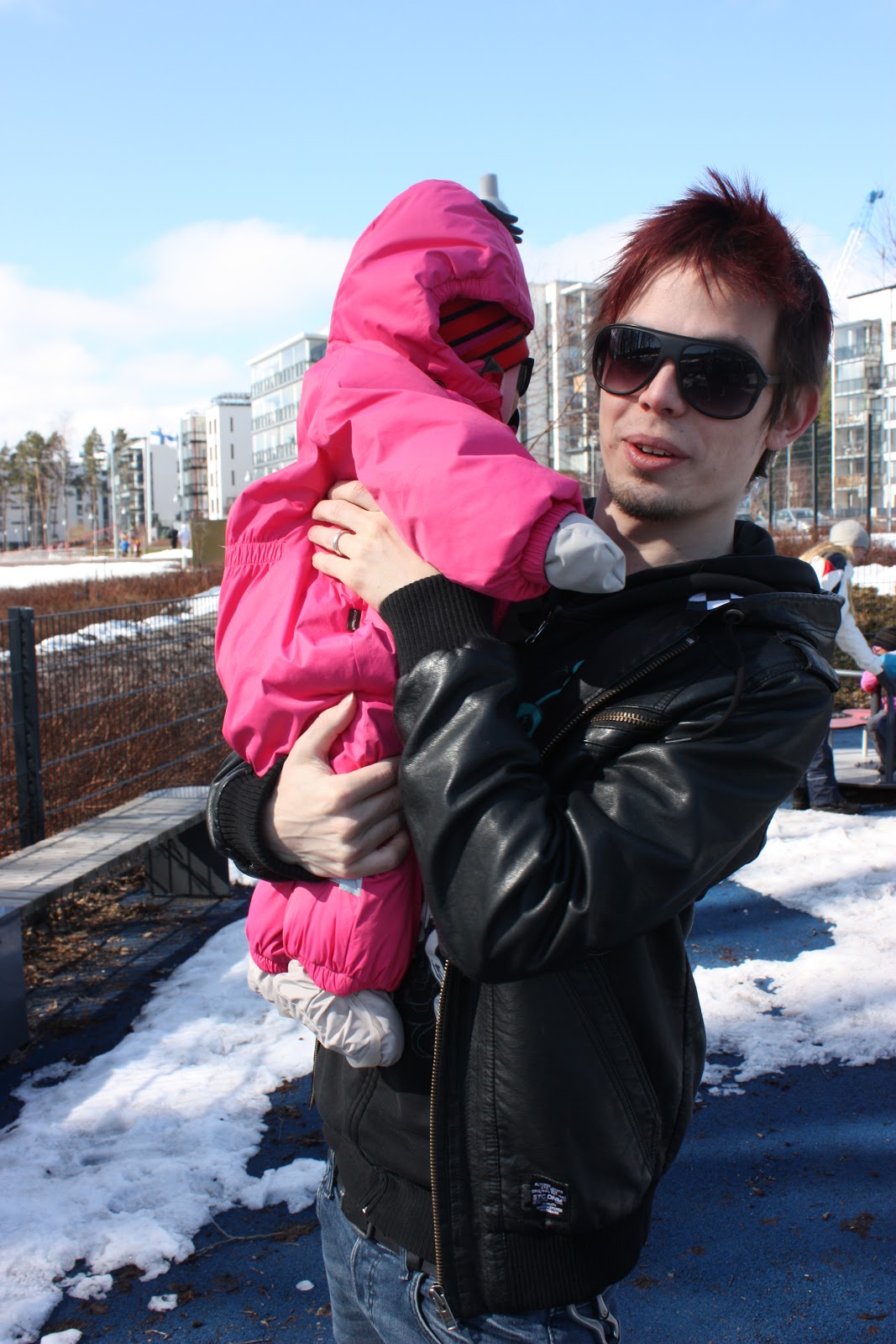 Kuinka söpöjä noi kaksi pientä palleroista voi oikeesti olla yhdessä? Samanlaiset sukatkin söpöliineillä! Mä en kestä, tässä on kyllä vuosisadan rakkaustarina aluillaan! Mä nään jo mun mielessä ”Just Married Tiara & Elias” -kylttejä, Sara älä nyt säikähdä (:——-D)! Mutta siis musta on aivan ihanaa että niistä on seuraa toisilleen ja vielä ihanampaa on se että meistä äideistäkin on seuraa toisillemme ja saadaan patistettua toinen toistamme niin lenkkeilemään kuin vaikka mitä muutakin. Just tällasesta äitikaveruudesta mä haaveilin raskausaikanakin! Sara myös nappasi musta parit päivänasukuvat ulkona, joten seuraavaksi niiden vuoro: