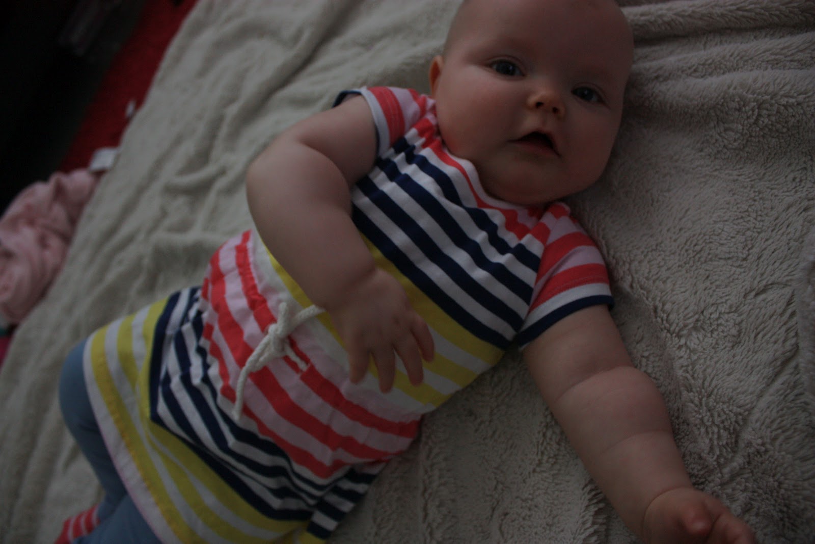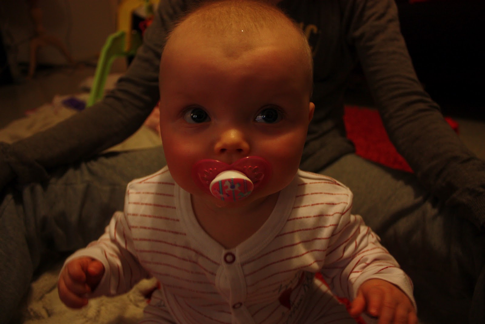 Tosta iästä mulla tuli semmonen juttu mieleen, mikä harmittaa ihan hirveesti, että meillä jäi neidin puolivuotisneuvola välistä tuon Oulun reissun takia! Seuraava neuvola on sitten vasta 27.4. ja silloin ikää on jo reilut 7 kuukautta. Mutta toisaalta, eipäs ainakaan tuu niin pitkää väliä sitten ennen 8kk neuvolalääkäriä kun se pitkä väli onkin ollut vahingossa nyt. Ois vaan niin kiva päästä sinne neuvolaan näyttämään meidän ihanaa taitavaa tytsyä joka istuukin niin hienosti, siis ihan oikeesti mulla meinas tulla tippaki linssiin muskarissa tänään kun olin niin ylpeä Tiarasta. On se vaan niin ihana ja rakas tyttö! Ja tässäpä ois muutama otos tuosta maailman rakkaimmasta neitokaisesta: