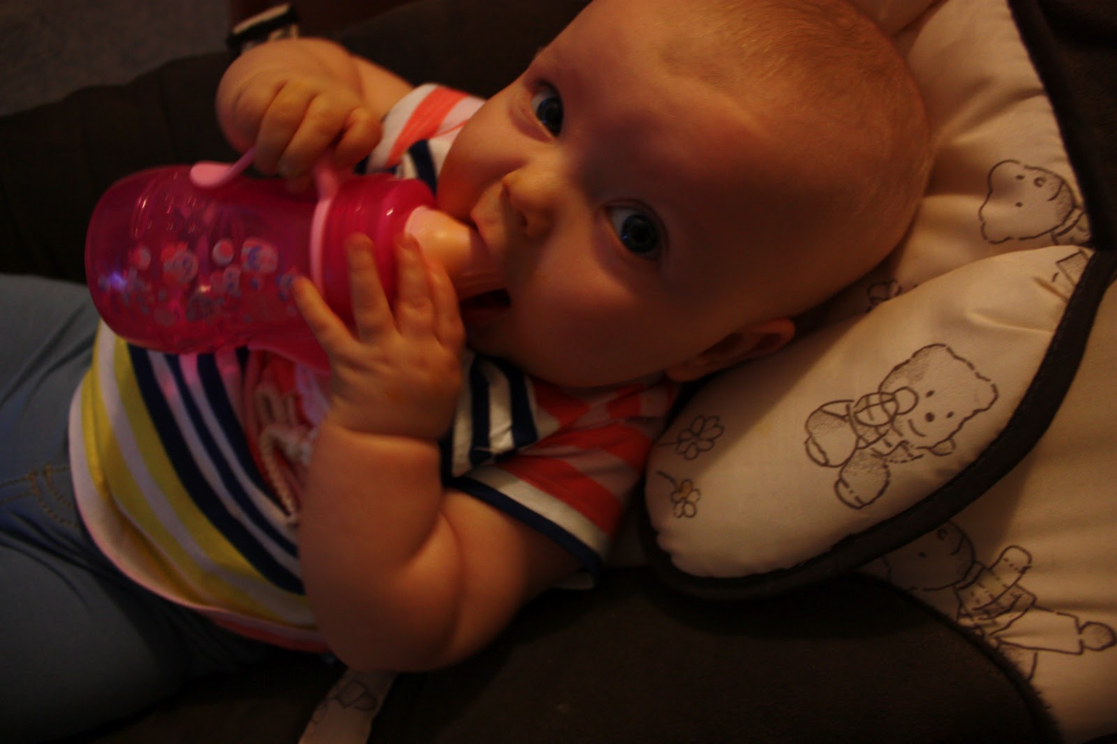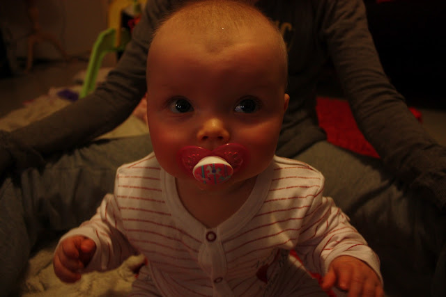 Tiarasta on tullut ihan oikeestikin kyllä niin tomera tyttö! Viikonlopun jälkeen Tiara on alkanu istumaan niin varmasti ja tomeran näköisesti tuetta ettei tosikaan! Siis nyt uskallan jo vaikka jopa käydä hakemassa vaikka keittiöstä maissinaksun ja jättää neidin olkkariin istumaan hetkeksi, koska tänäänkin Tiara istui vauvakerhossa koko sen ajan (2,5h) mikä oltiin siellä ja horjahti ainoastaan kerran. Ja sekin horjahdus johtui siitä että Tiara tiiraili söpöä poikaa joka lähestyi ja neidin keskittyminen herpaantui, mut onneksi oli toinen söpöliini ritari ottamassa kiinni kun Tiara kaatui suoraan Eliaksen syliin. Aijaijai, millanen flirttaileva neiti tosta Tirriäisestä onkaan tulossa kun nyt jo pojat sekottaa sen pään ja ikää on vasta 6,5 kuukautta!