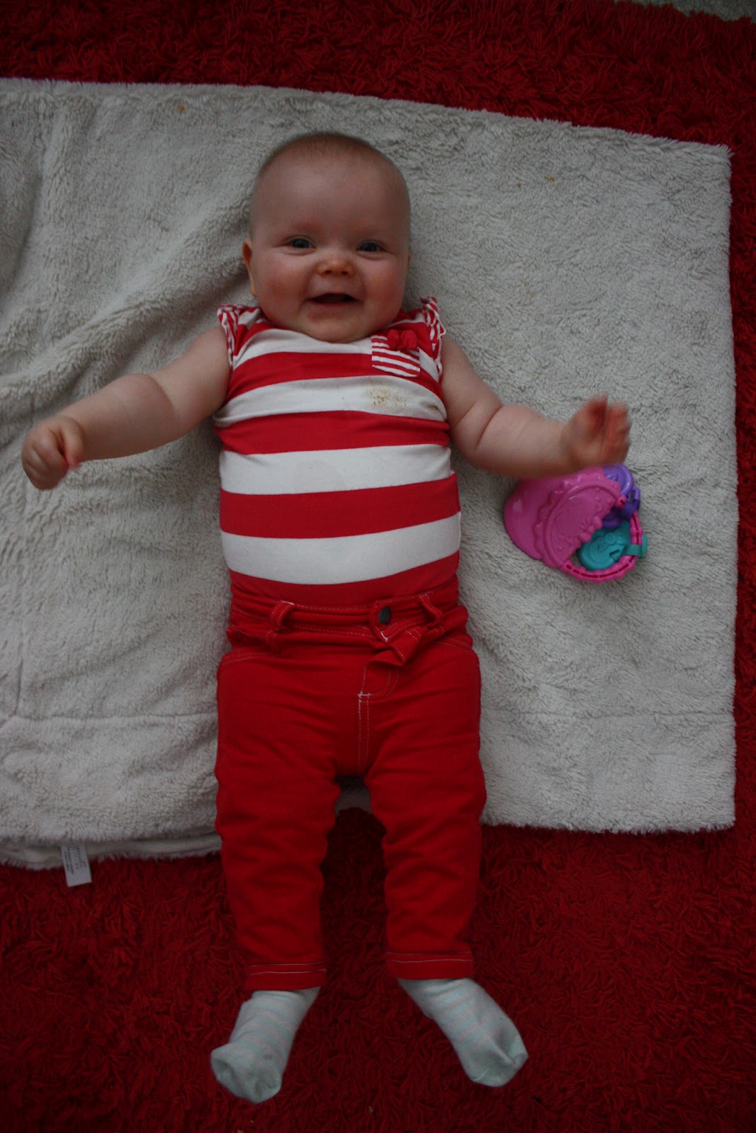 Sitä aina joka kuukausi herää tajuamaan sen että kuinka paljon kuukauden aikana voikaan tapahtua kehitystä, niin lapsessa kuin vanhemmissakin. Joka kuukausi kun ikää tulee lisää mä jaksan hämmästellä sitä miten paljon lapsi oppii uusia asioita 30 päivän aikana, miten isoja asioita! Jos aikuinen olis kykeneväinen oppimaan noin suuria juttuja niin lyhyessä ajassa niin mehän oltais kaikki ihan älyttömän fiksuja! Mutta kyllä mun mielestä meissä vanhemmissakin tapahtuu kehitystä aina kuukauden aikana, joka kuukausi (no okei joka päivä) mä huomaan rakastavani meidän neitiä vielä miljoona kertaa enemmän. Ja joka kuukausi mä opin tuntemaan sen paremmin, mistä se tykkää, mistä ei tykkää, mikä saa nauramaan ja mikä ehkä päristelemään. Millä saa pienen itkun loppumaan ja mikä saa ihanan suloisen hymyn Tiaran kasvoille. Okei no Tiara hymyilee melkeinpä aina, nauru on vähän vaikeempi; siihen tarvitaan joko pomputtelua tai masun nuuskutusta, kutituskin joskus toimii.