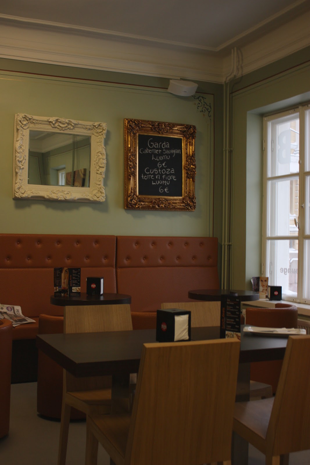 Eilen piipahdettiin Tirriskän kanssa Oton duunipaikalla esittelemässä neitiä vähän. Voi että oli Tiara ihmeissään ku varmaan kymmenen eri tyyppiä tuli ihmettelemään ja juttelemaan. Pientä vierastusta oli ehkä havaittavissa epäluuloisesta katseesta päätellen mutta kiltisti Tiara kumminkin oli ja jopa jutteli vähän. Tämän visiitin jälkeen neiti olikin sopivasti aivan naati ja nukahti vaunuihin samantien, mä jatkoin sitten matkaa metrolla keskustaan ja mentiin Nonan kanssa syömään Senaatintorilla sijaitsevaan Kiseleffin taloon ihanaan Ciao! Caffe:en.
