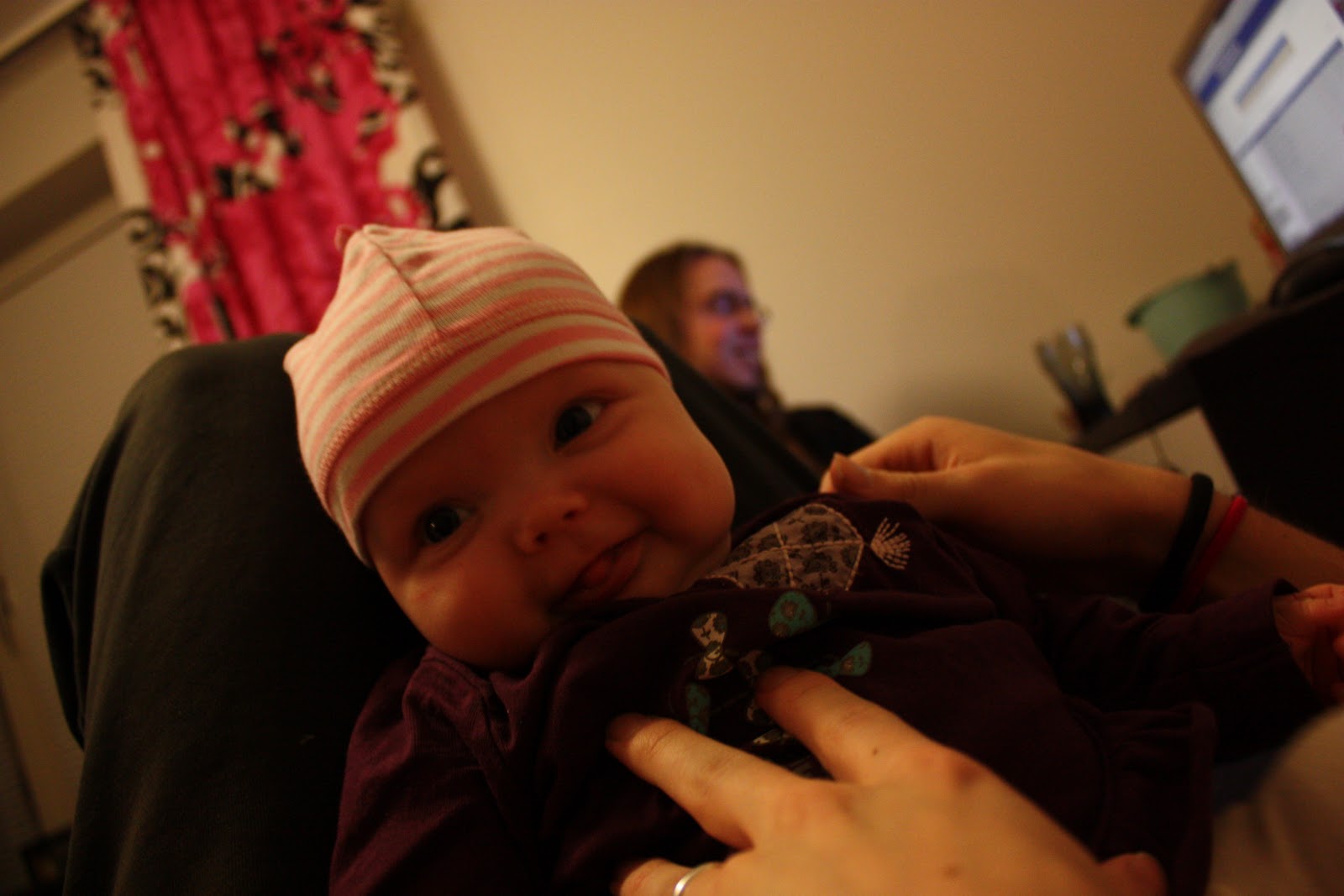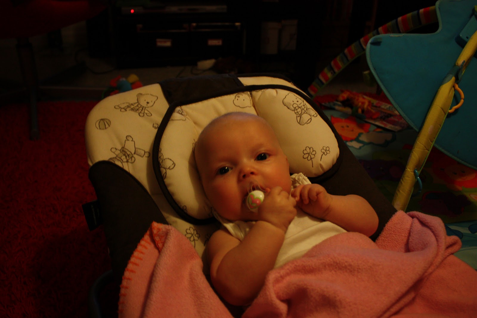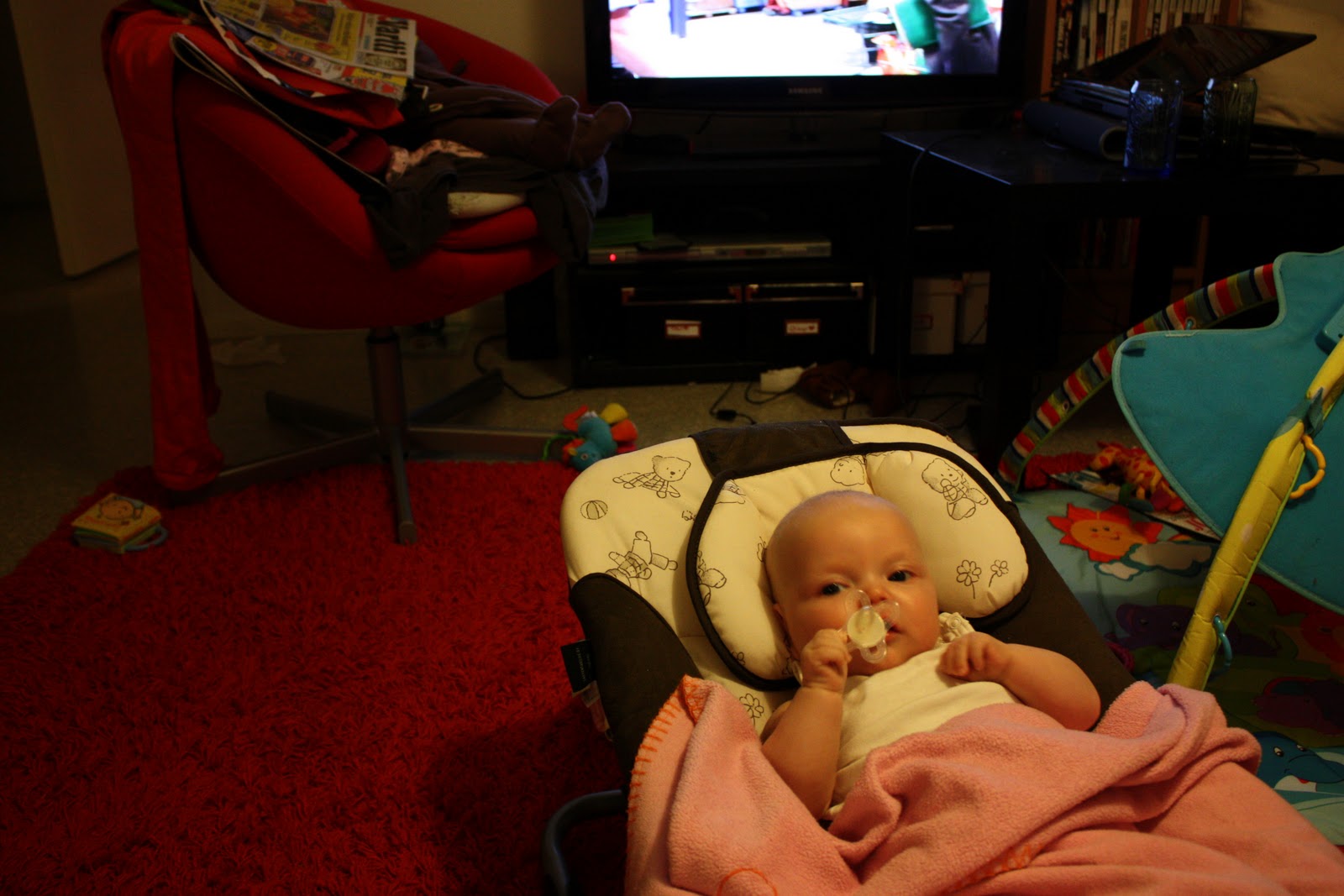 Keskiviikkona Tiaralla ei ollut vielä vaikeaa hampaan kanssa ja neiti olikin itse aurinkoisuus koko päivän. Illalla kateltiin telkkaria Oton kanssa ja huomattiin että Tiara onkin herännyt päikkäreiltä ja ottanut tutin käteen! Tiara näytti yhtä hämmentyneeltä osaamisestaan kun minä ja Ottokin! Taustalla ihana lelusotku, ei oo kauheesti kerennyt siivoilla tässä mutta mitäs pienistä.