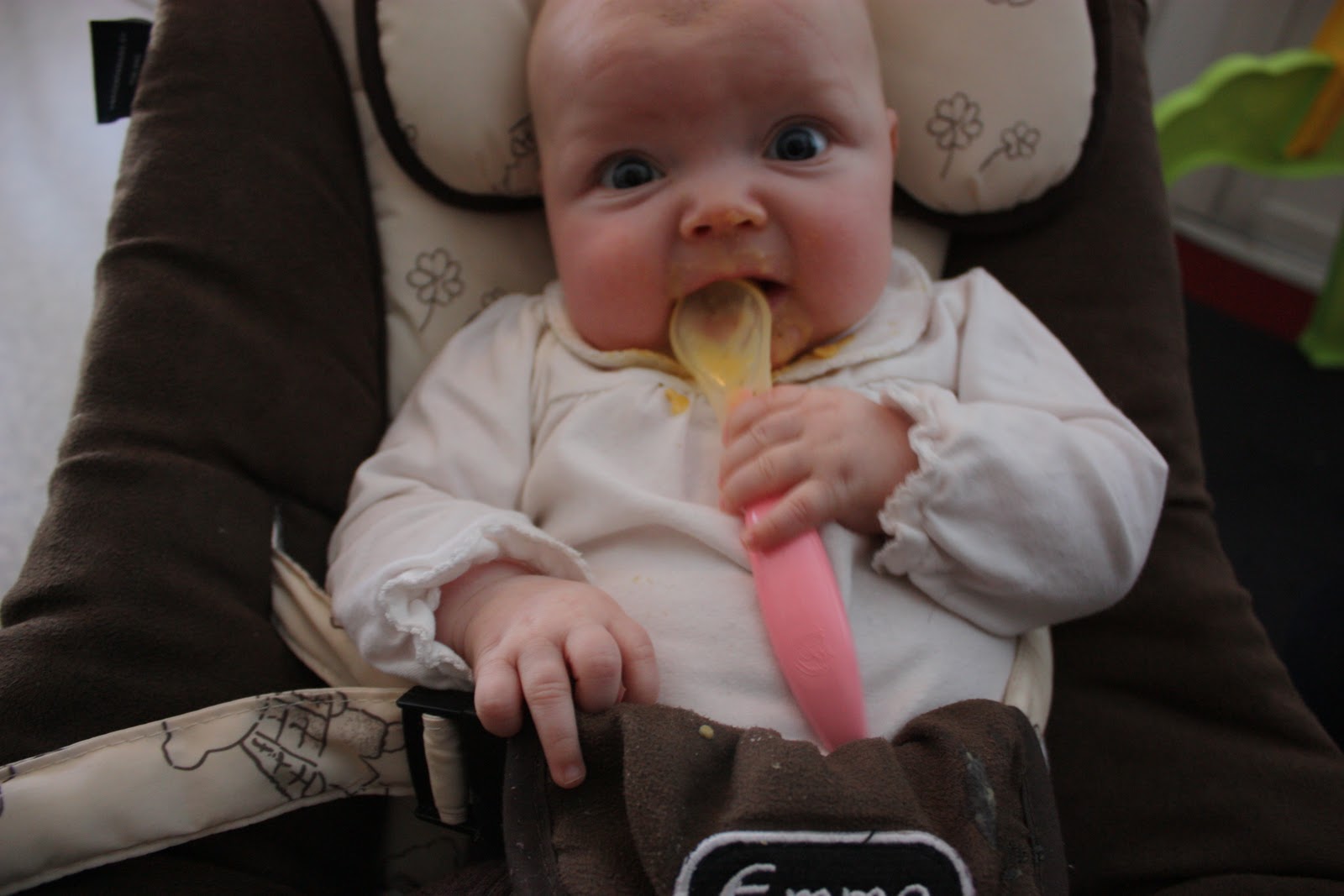 Tässä vielä pari kuvaa meidän ihanasta 4kk vanhasta pipopäästä, neidillä alko taas kertymään karstaa päälaelle niin piti tehdä öljy+harjaus uudelleen. Onneksi lähti kerralla kaikki pois! Tiara on hassu vauva, se rakastaa ku harjaan sen päätä se oikeen kujertelee ja höpöttää samalla ja hymyilee iloisesti! Mut hyvä että se tykkää, muuten vois olla vaikee saada karstoja pois.