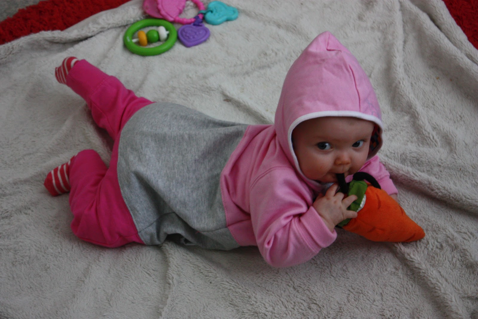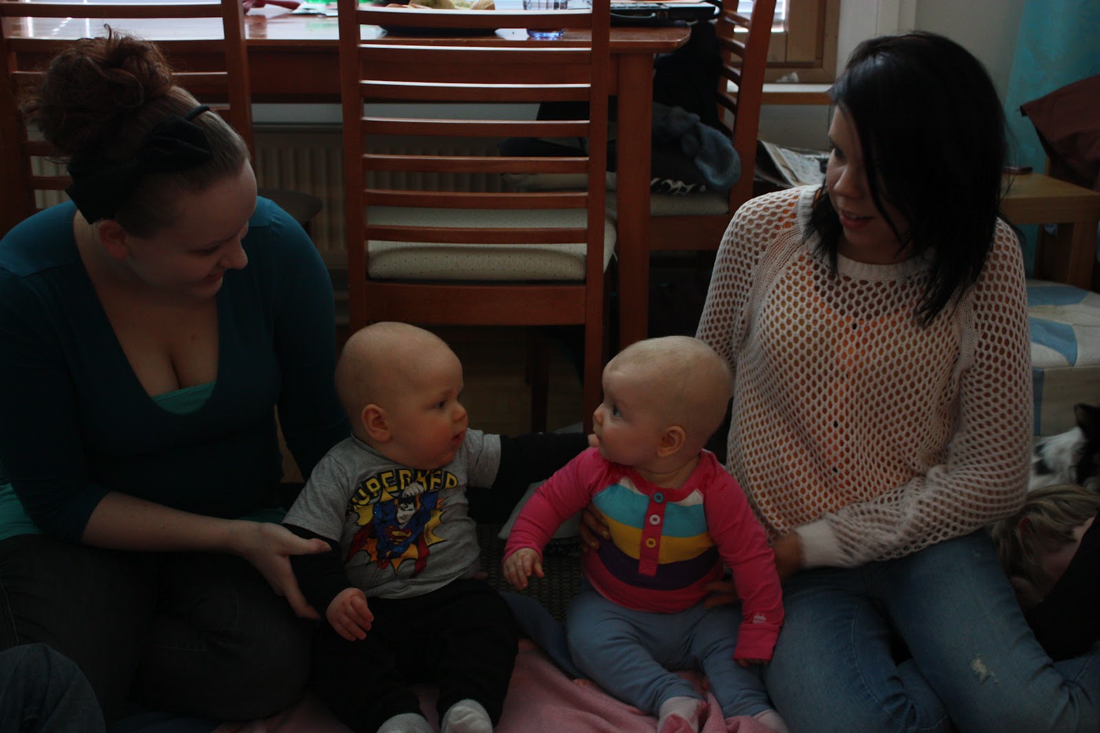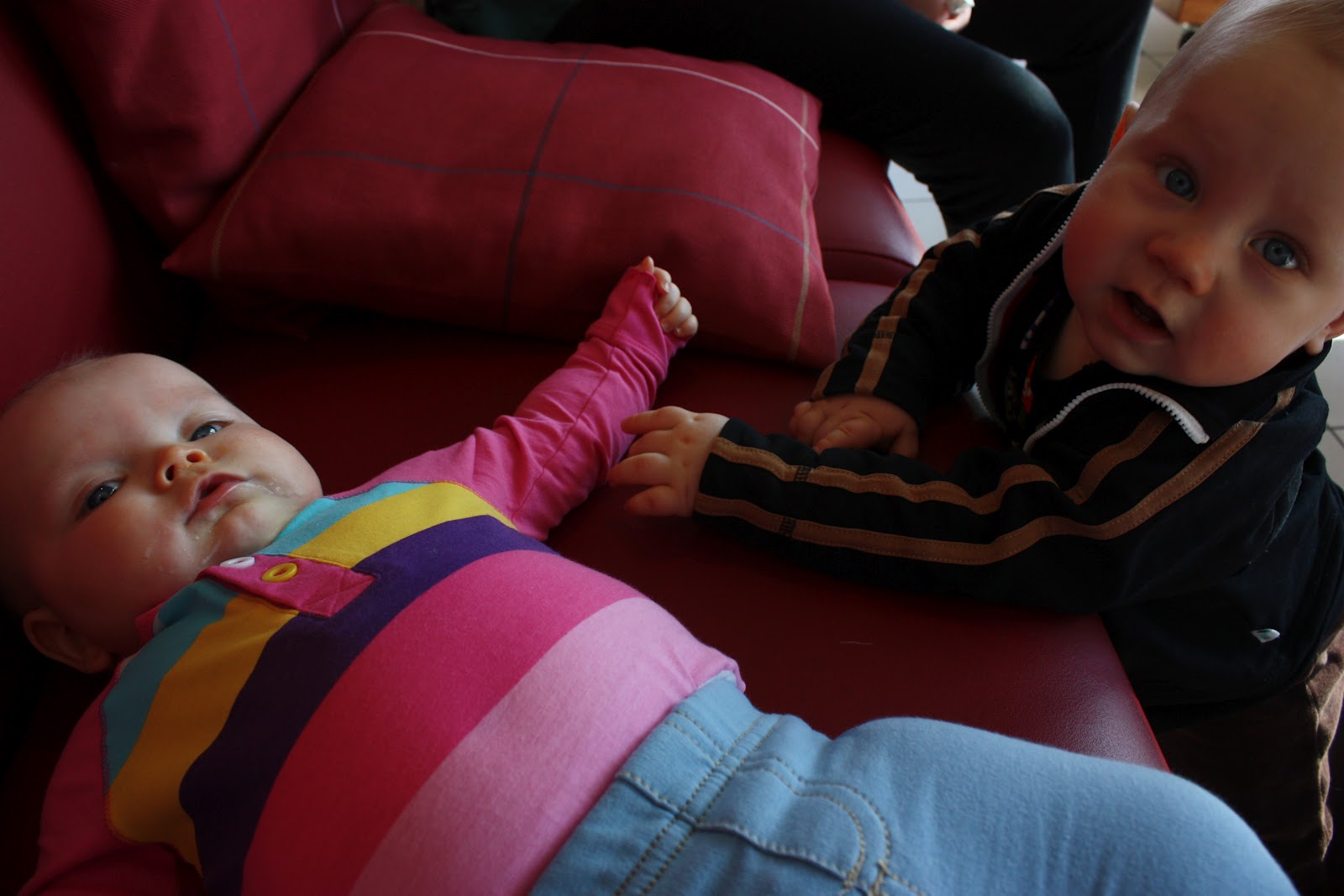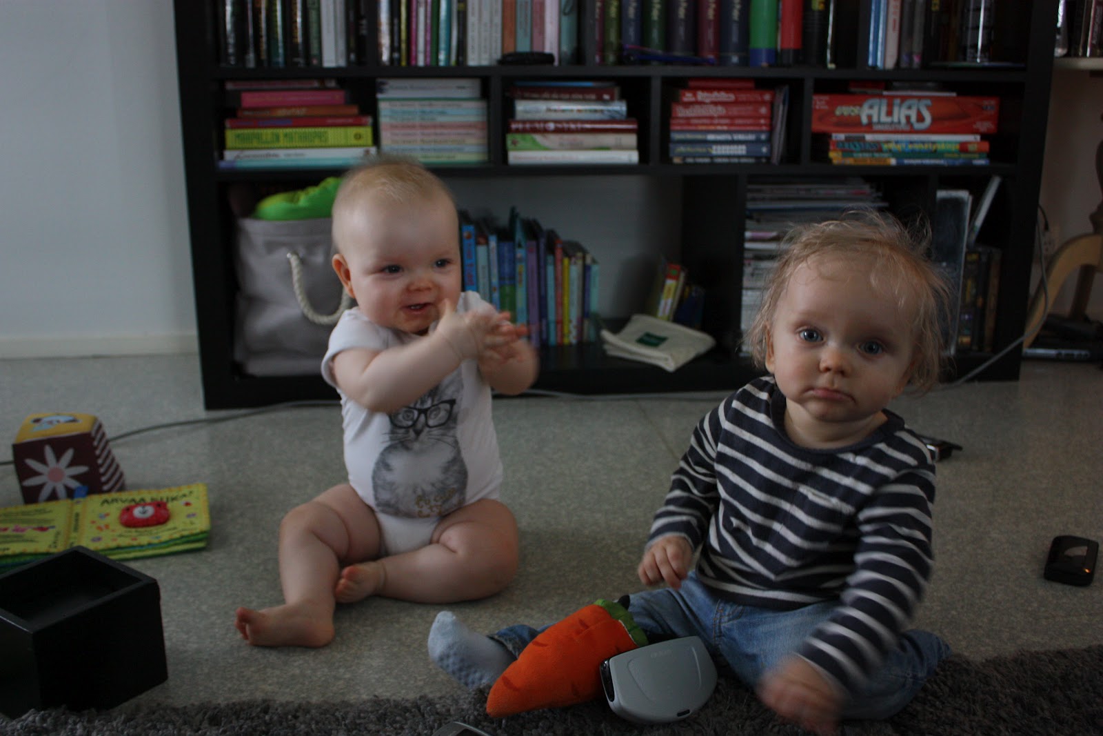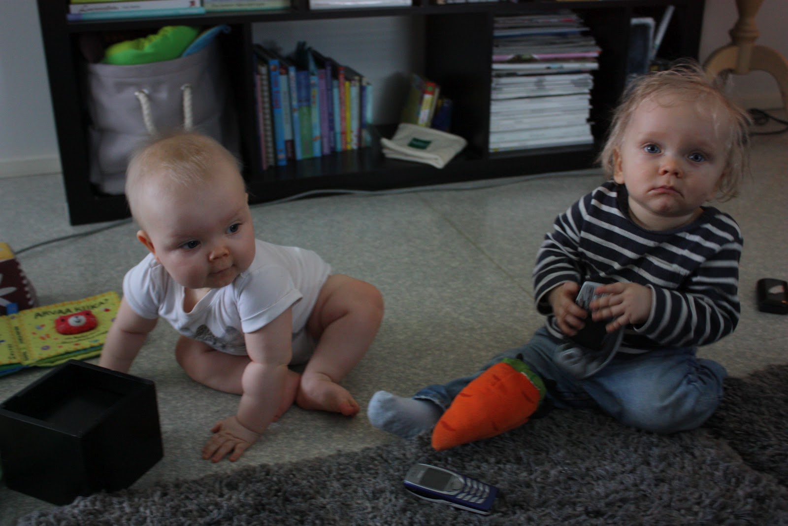 Aattelin nyt tulla kertomaan ihan oikeita kuulumisia kun moneen päivään ei ole tullut sellaista ihan tavallista postausta tehtyä. No mitäs meille sitten kuuluu? Hyvää vain, Otolla alkaa huomenna kesäloma jeejeejee! Pari päivää oli aivan loistavat ilmatkin auringonottoa ajatellen, tosin tänään harmaat pilvet ja sateet peittää taas sen ihanan auringon mutta eipä me oltu täksi päiväksi kaavailtukaan mitään erityistä tekemistä. Torstaina saatiin Sara ja Elias meille seuraksi ja voi että noi pienet nyt pystyi olemaan vuorovaikutuksessa keskenään ihan eri tavalla kun Tiarakin pysytteli jo enemmän pystyasennossa eikä makuullaan! Tiarasta ja Eliaksesta on tullut kyllä tosi hyviä leikkikavereita keskenään ja ne selkeästi tykkäävät kun saavat vain molemmat vipeltää rauhassa menemään. Oli ihana katsoa kun ne vaihteli leluja ja kikatti yhdessä, Tiara oli selkeästi haltioitunut Eliaksesta kun se kokoajan taputti pikkuherran tekemisille. Kuinka söpöjä voi lapset olla?
