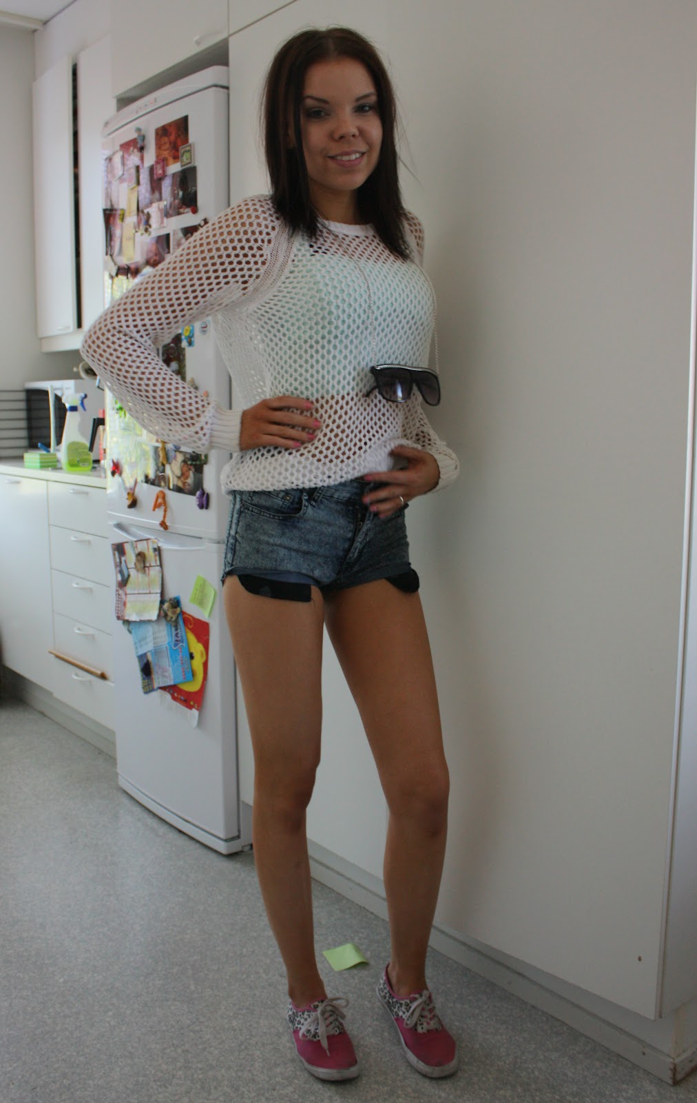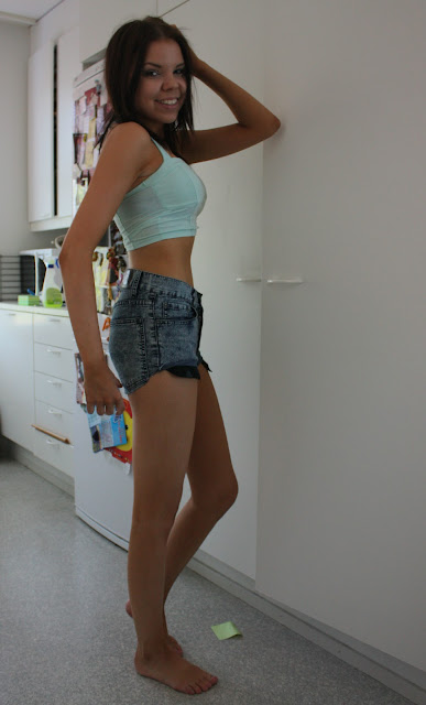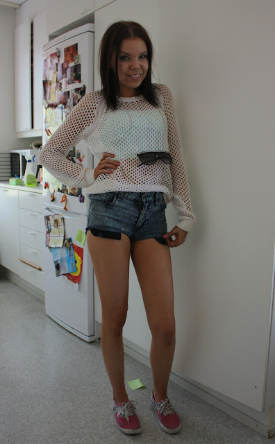 Sit olis vielä muutamat asu- ja nassukuvat musta! Mä oon ollut taas niin innoissani noista lämpimistä ilmoista kun pääsin käyttämään toisia tuunaamiani shortseja, muutin siis Cheap Mondayn hiusväritahraiset, liian isot ja huonosti istuvat farkut shortseiksi ja oon kyllä tosi tyytyväinen niihin nyt! Varsinkin kun sain leikattua tahrakohdat pois ja nyt noi istuukin paremmin vaikka on ne edelleen liian isot vyötäröltä, mut eikös huonosti istuvat shortsit ole tällä hetkellä aika tyylikkäitä?