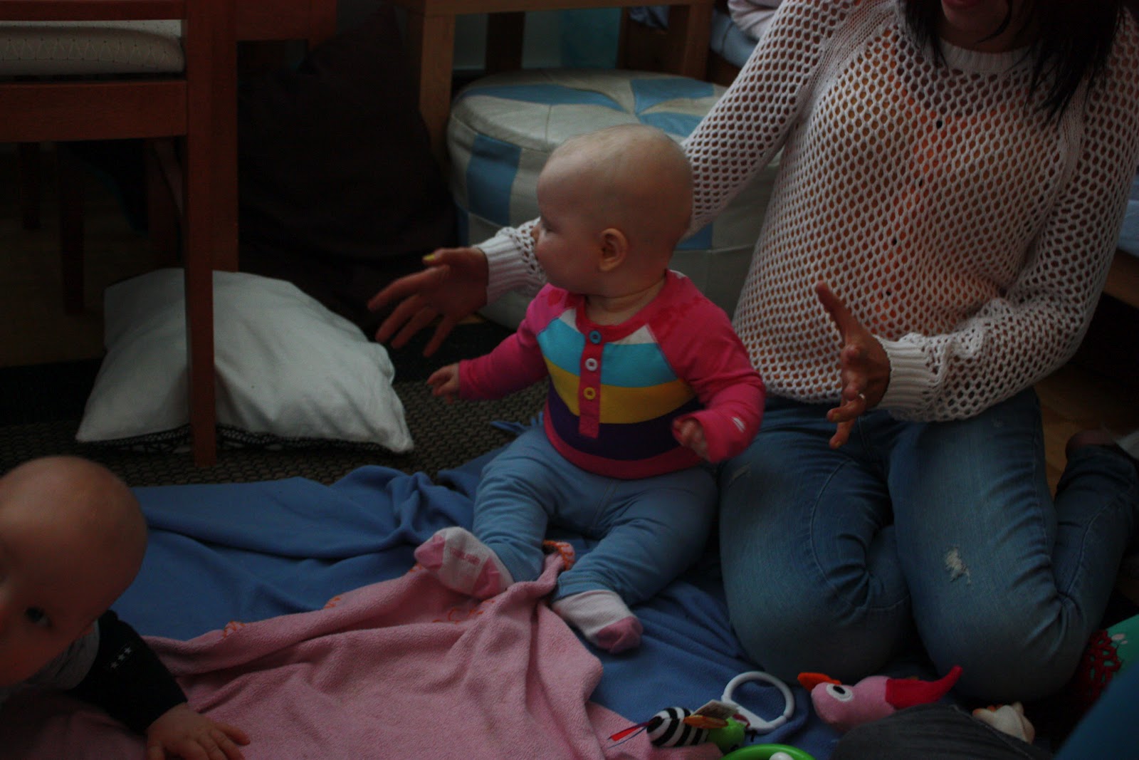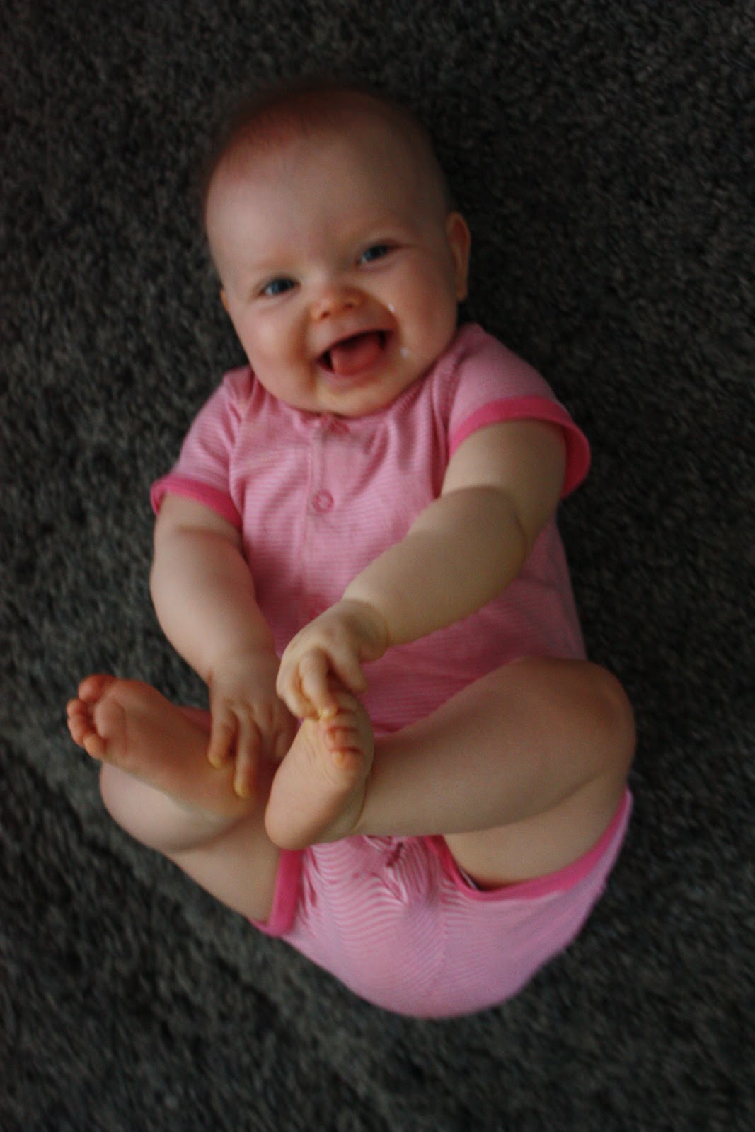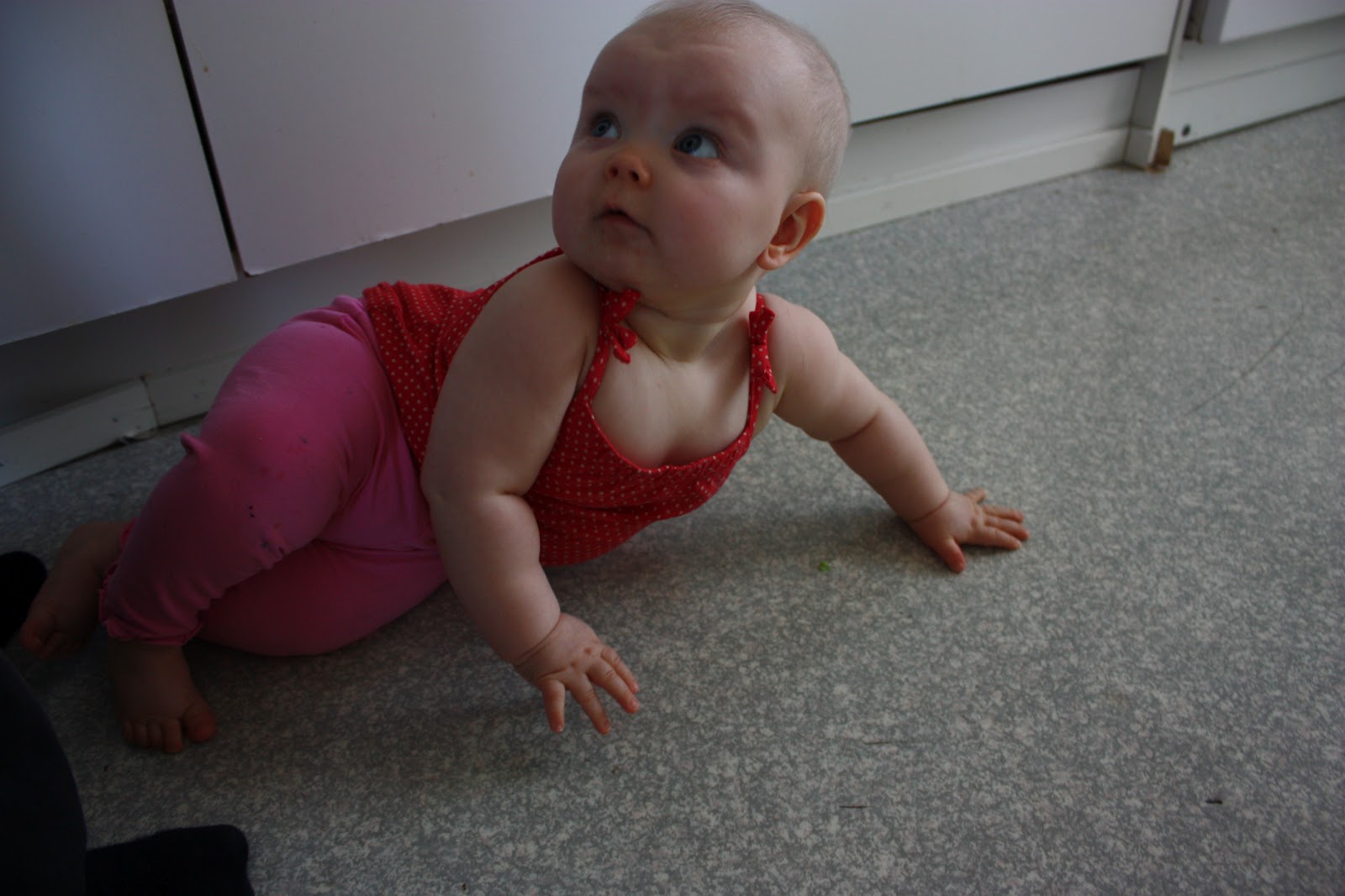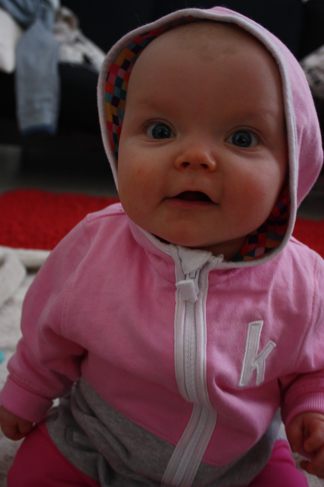 Pakko tähän loppuun vielä kertoa, että lasten kasvatus on kivuliasta puuhaa! Mä makoilin äsken lattialla ja puhuin äidin kanssa puhelimessa niin eiköhän Tiara tarrannut mua silmästä ja hiuksista kiinni ja nousi polvilleen kun se yritti ottaa multa puhelinta! Ja sitten kun sanoo että ”Ai ai äitiä sattuu, ei saa” niin saa vain räkäiset naurut palkaksi, nice! Kyllä mä sen ymmärrän ettei noin pieni tosiaankaan vielä tiedä että se voi satuttaa toista ja kyllä nyt naurattaa itseänikin mut äsken kyllä sattui. Mut on se silti ihana neiti,
