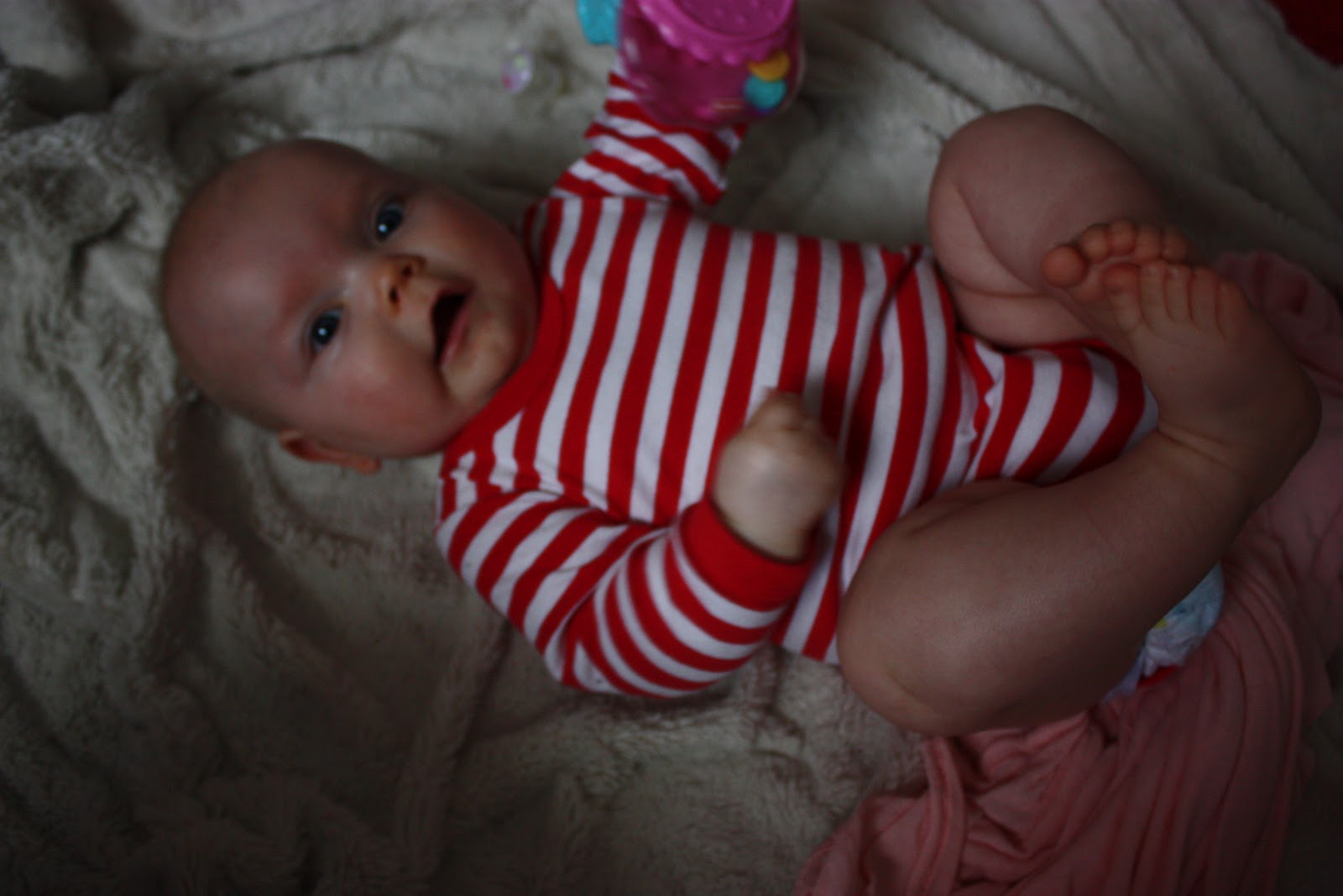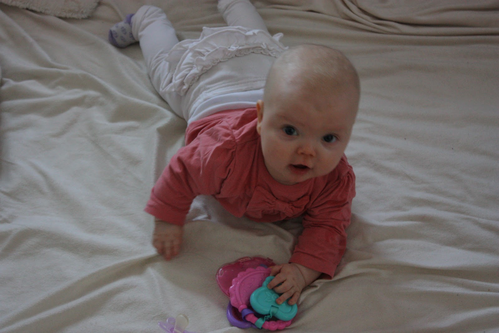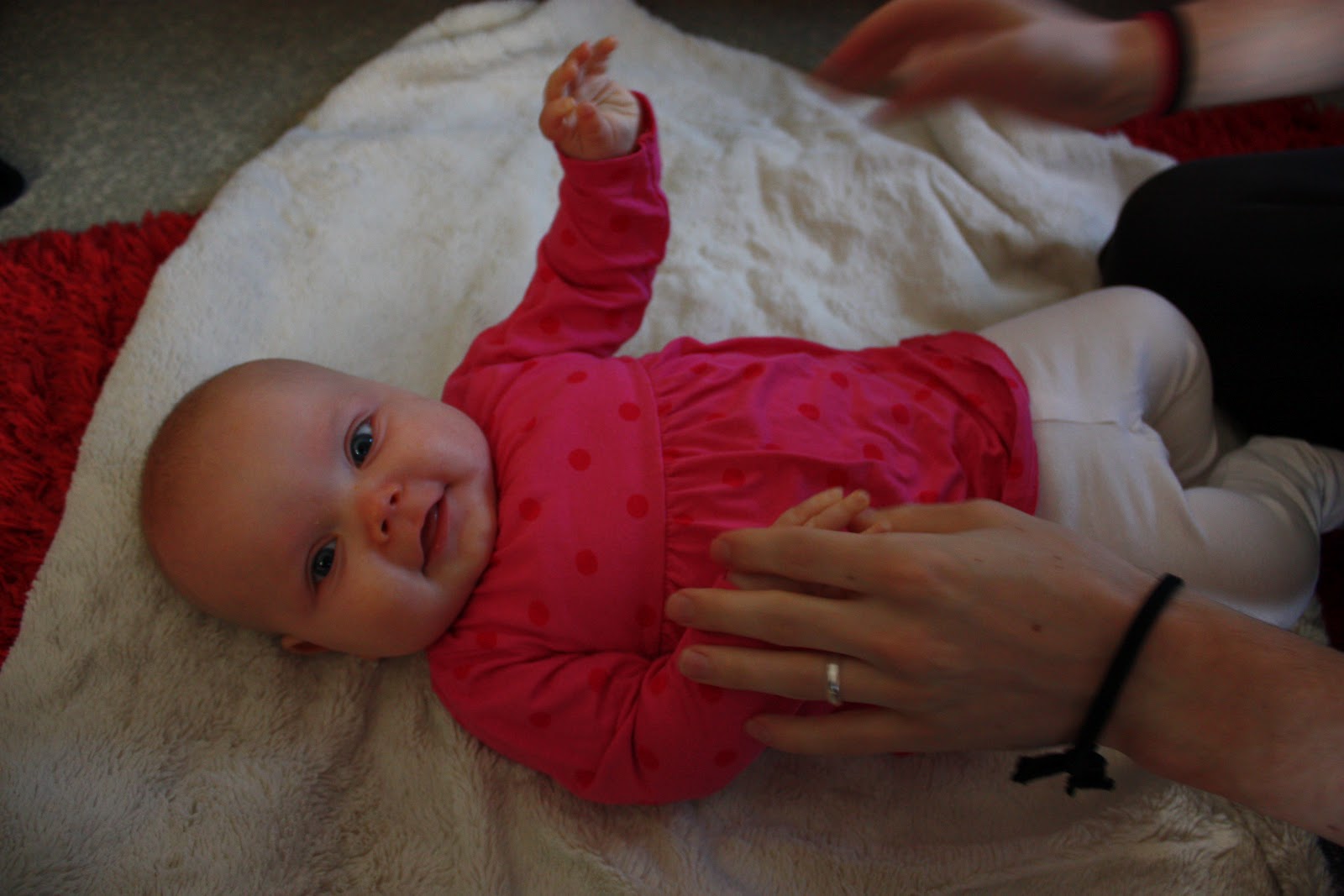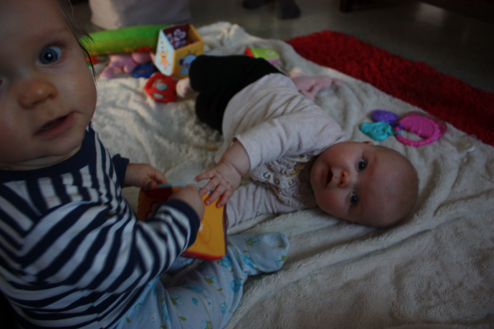 Tiara oli niin väsynyt monen tunnin leikeistä että kun oltiin lähdössä ja puin neitiä ulkovaatteisiin se nukahti sinne kerhon eteisen lattialle. Vauvakerhoilun jälkeen lähdettiin vaunulenkille merenrantaan ja käytiin pikaisella vierailulla Piilo -kirppikselläkin. Piilosta ei tosin tällä kertaa löytynyt oikein mitään meille sopivaa, kaikkea ihanaa kyllä mutta ei oikeassa koossa. Musta tuntuu että tää ikä on silleen aika vaikea kirppisshoppailun kannalta, tuntuu että kaikissa vaatteissa on yläosat sosetahroissa ja alaosista polvet rikki tai kuluneita. Mutta sitten taas niitä vähän isompia vaatteita löytyy paljon enemmän. No jospa me selvitään tästä ikävaiheesta kauppojen valikoimalla ja tehdään niitä löytöjä sitten isompana taas! Yksi löytö pitäis kyllä tehdä, ihan sama kirppikseltä vaiko kaupasta mutta mä haluan ostaa Tiaralle pallon. Tiara leikki eilen eka kertaa elämässään pallolla ja voi että se tykkäsi kovasti! Hankintalistalla siis pehmeä, iloisen värinen ja sopivan kokoinen pallo, vinkkejä, anyone?