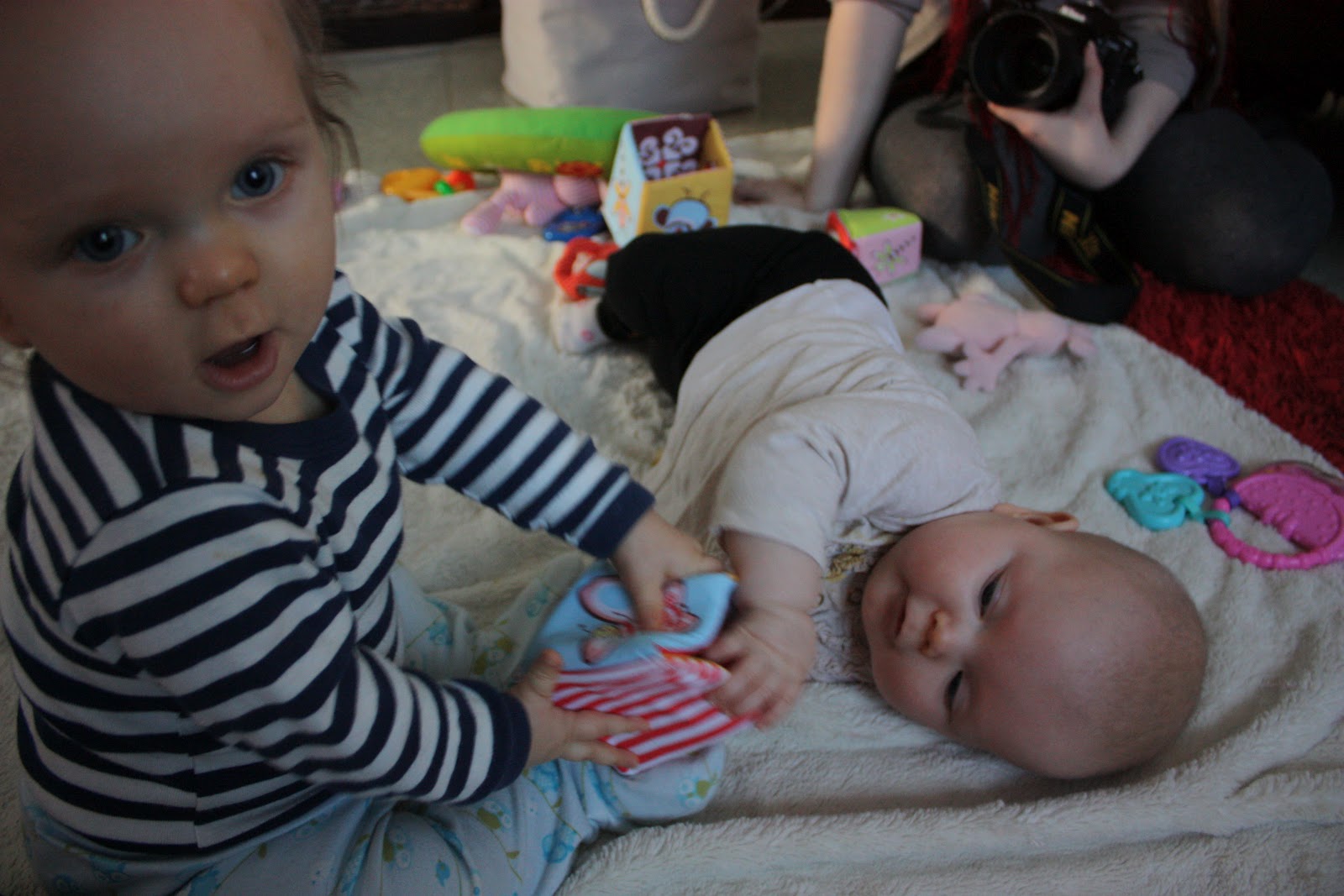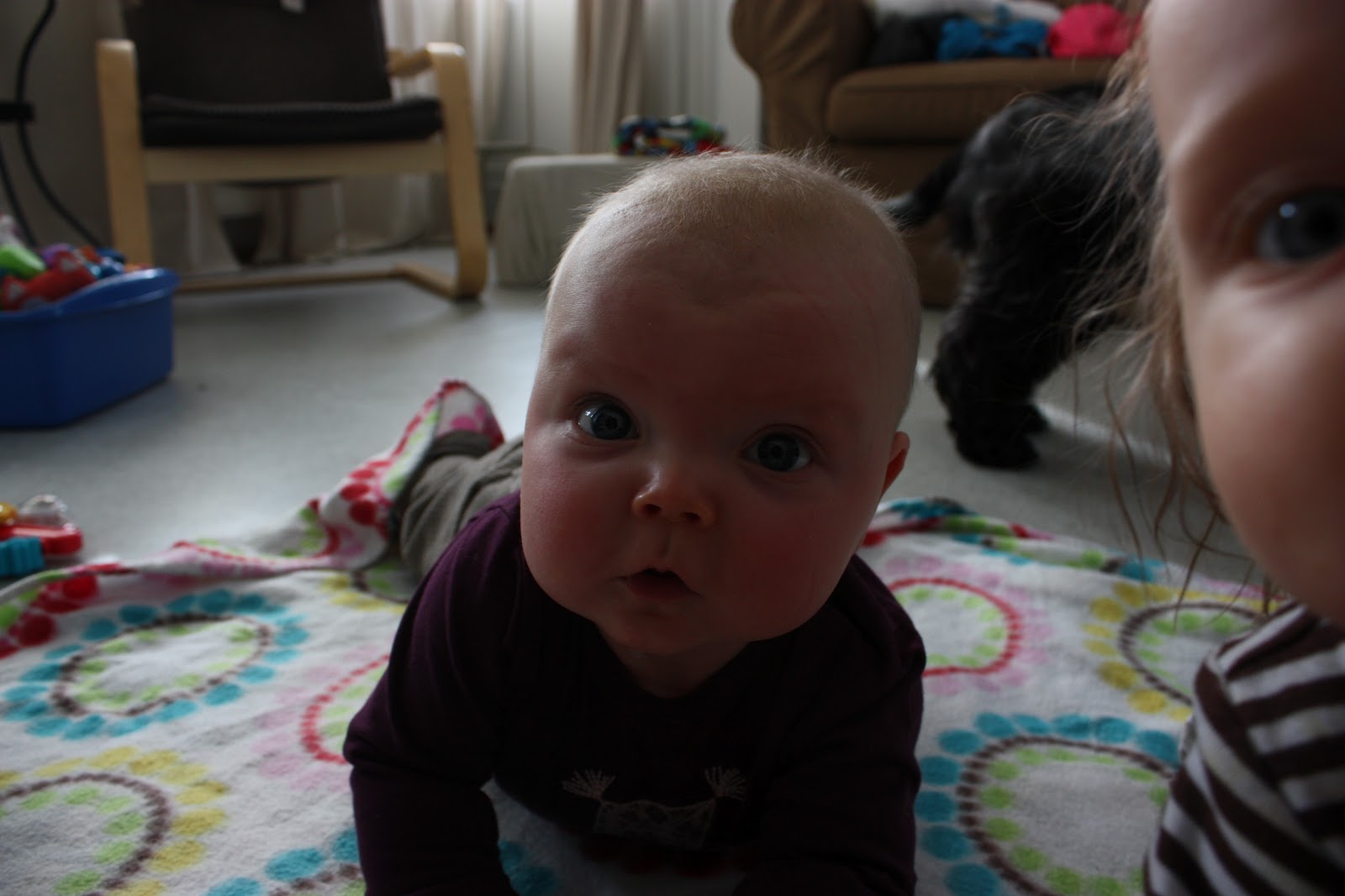 Käytiin eilen ensimmäistä kertaa Tiaran kanssa tuolla meidän läheisessä perhetalossa ja voi että mua oikeestaan naurattaa se että miksen oo mennyt sinne aiemmin! Siis kuinka kivaa siellä olikaan, Tiara ei vierastanut ollenkaan ja saipa hän ensimmäisen oikean pusunkin kun blogikollegani Saran ihana Elias -poika konttasi neidin luo ja pussasi mojovan muiskauksen. Tiara kihersi innosta ja jutteli ja leikki ihan innoissaan monta tuntia. Musta tuntuu että aletaan vierailemaan tuolla kyllä hieman useammin kuin kerran viidessä kuukaudessa, paikka on nimittäin jokapäivä auki ja tunnelma oli todella rento. Sai tehdä mitä itse halusi eikä ollut mitään pakollista ohjelmaa, kukaan ei tuputtanut mitään mutta jos halusi niin sai osallistua myös ryhmätoimintaan. Ja saipa sieltä hyvää pullaakin!